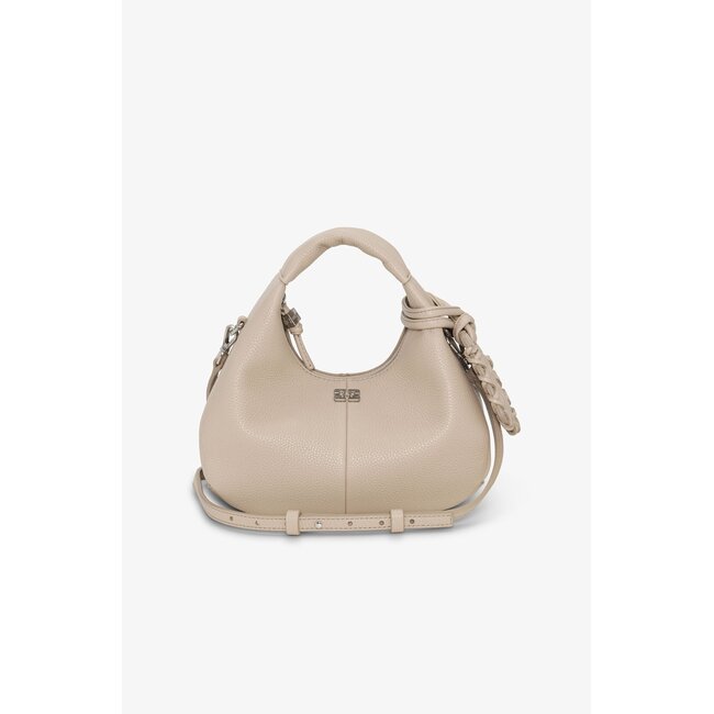 This bag features a top handle, adjustable and removable strap and a zipper closing. The bag has a mirror hangtag and an internal pocket.