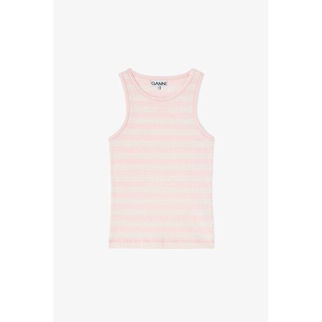 Review GANNI GANNI Soft Cotton Rib Tank Top chalk print