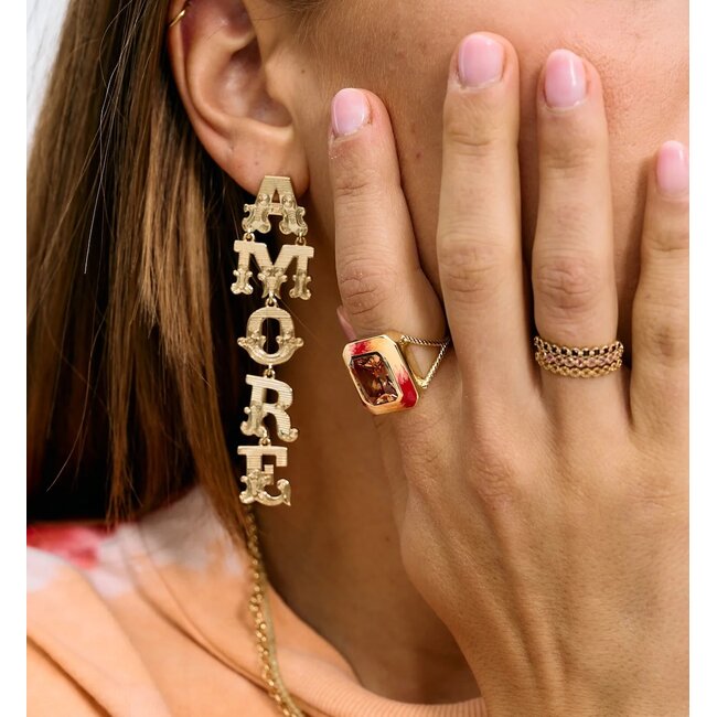 Beoordeel Anna + Nina Anna + Nina Alba Rosso Ring Gold Plated