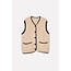 Een persoonlijke favoriet is onze KYOTO gebreide cardigan. Het mouwloze vest is gemaakt van bouclé garen, heeft een losse pasvorm, sluit met knopen in het midden en is afgewerkt met een donkerbruine nepleren bies. Dit item is perfect om te layeren op koudere dagen.
