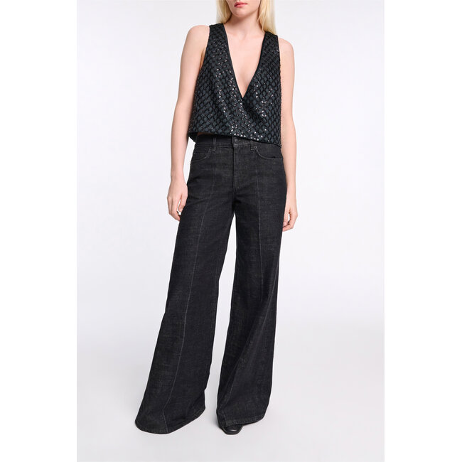 Deep love pants zijn de perfecte aanvulling op je garderobe voor een stijlvolle en modieuze uitstraling. Deze zwarte, hoge taille broek met wijde pijpen straalt een casual elegantie uit die zowel comfortabel als chic is. De subtiele glans van de stof in combinatie met het tijdloze ontwerp maakt deze broek een must-have voor elke modieuze vrouw.