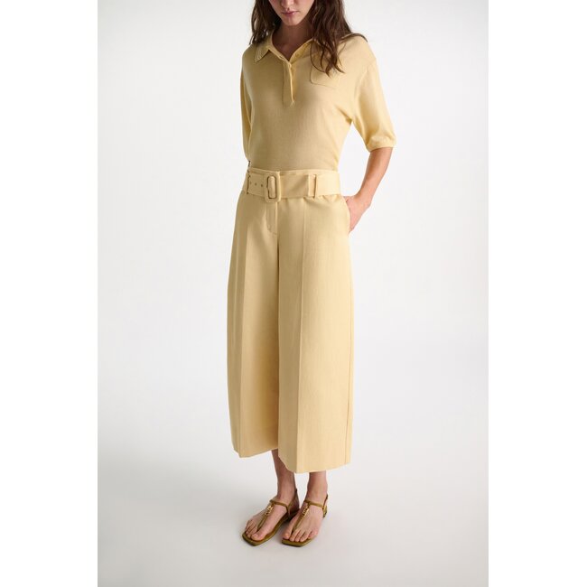 De katoenen culotte heeft een high-waisted pasvorm, een wijde pijp en een cropped lengte. De culotte is voorzien van een bijpassende riem met een met stof beklede gesp. Combineer met de bijpassende blazer voor een complete suit look.