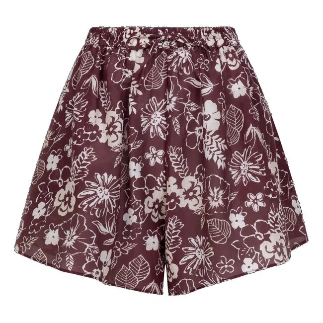 Maak kennis met de Leonardo Shorts in een prachtige bordeauxrode bloemenprint. Deze mid-waist shorts hebben een elastische taille, waardoor ze super makkelijk aan- en uit te trekken zijn. Het losse model en de hoge pijp zorgen voor een luchtige pasvorm die heerlijk licht aanvoelt op je huid. Gemaakt van een zachte, ademende katoenmix, perfect voor warme dagen.