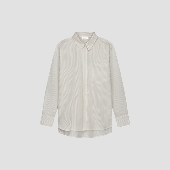 Het Striped Oversized Shirt heeft een losse, oversized fit en is gemaakt van een lichte, luchtige stof. Het is afgewerkt met subtiele mini-strepen en een logo op het linker borstzakje. Ideaal om over je bikini te dragen of te combineren met de bijpassende broek voor een relaxte zomerse look.